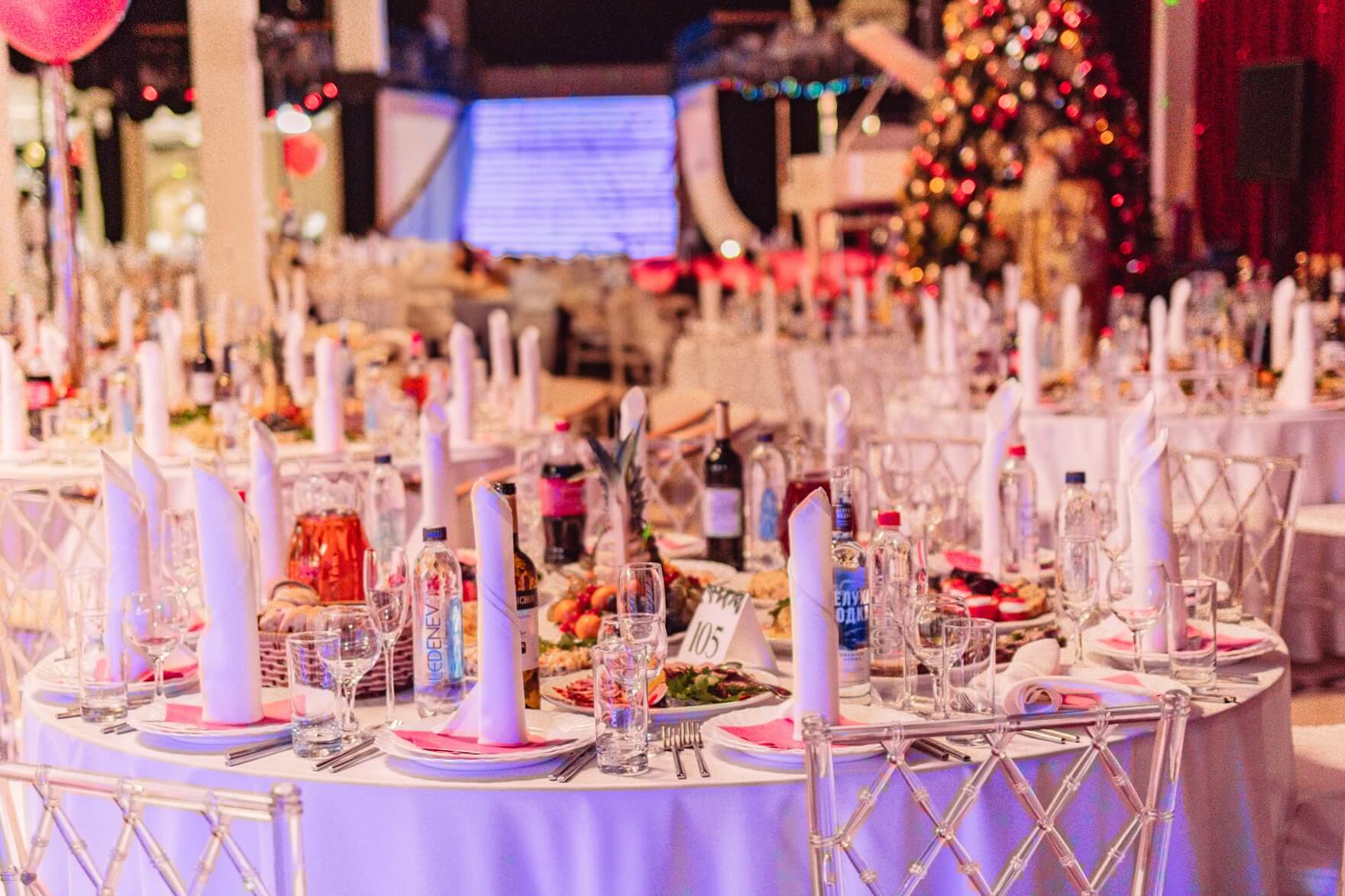 Праздничный банкет: мы составили изысканное меню, состоящее из холодных и горячих закусок, салатов, горячих блюд и десерта.