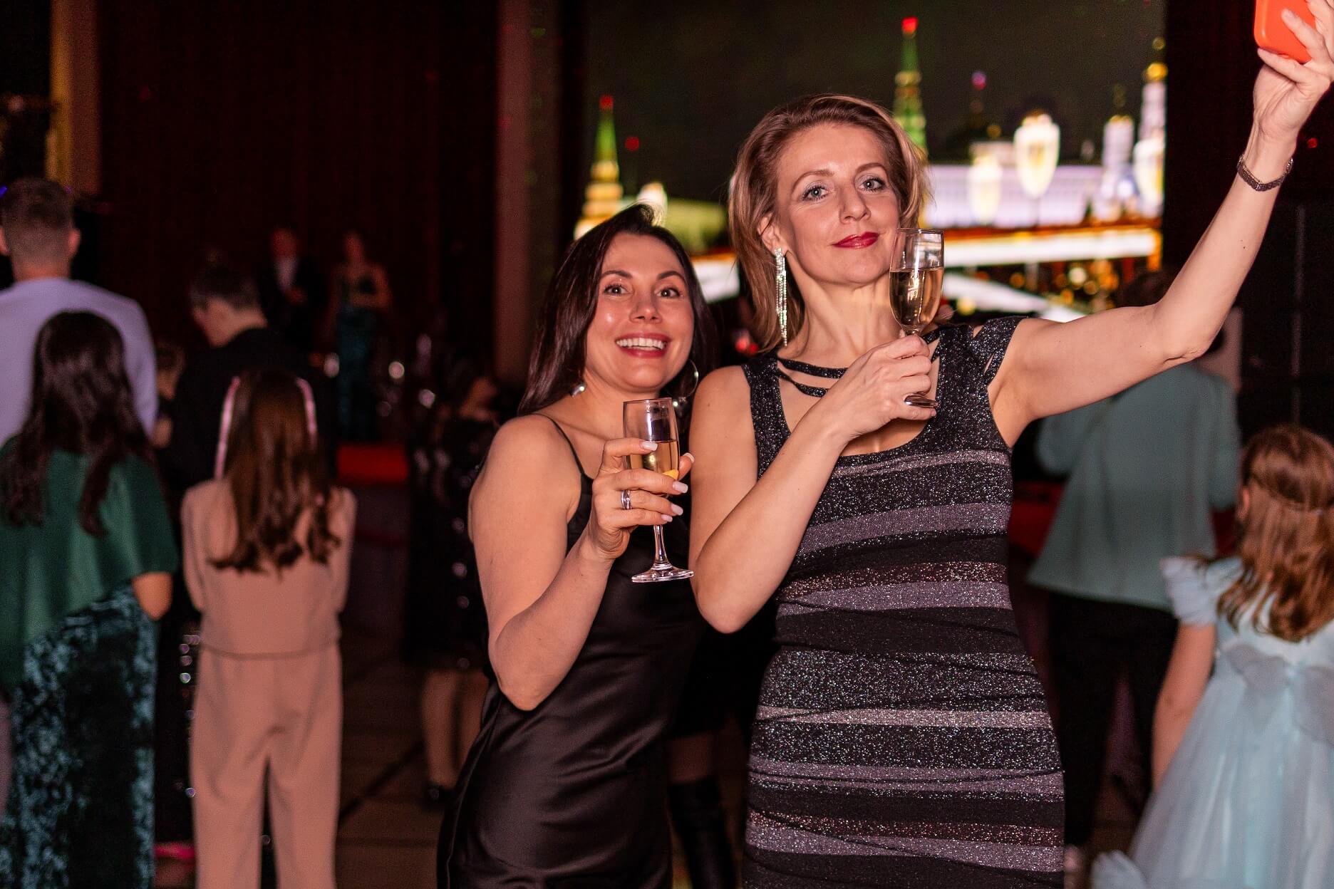 Работа фотографа в зале и на новогодней фотозона на протяжении всей ночи