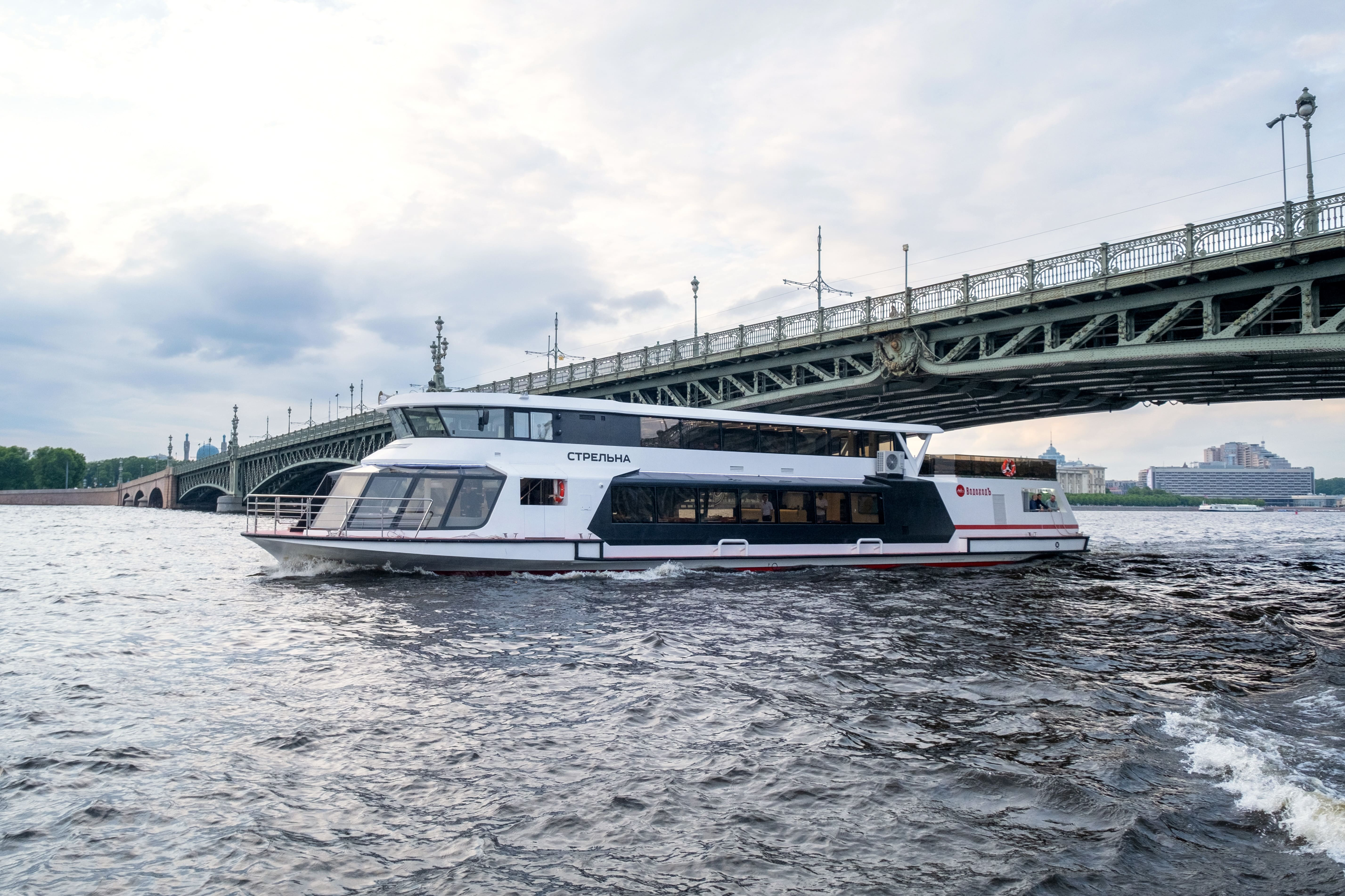 Речные прогулки на электроходе «Стрельна» от причала Киевский доступны ежедневно. Современное судно, комфортабельные салоны и авторская кухня создают условия для идеального отдыха.